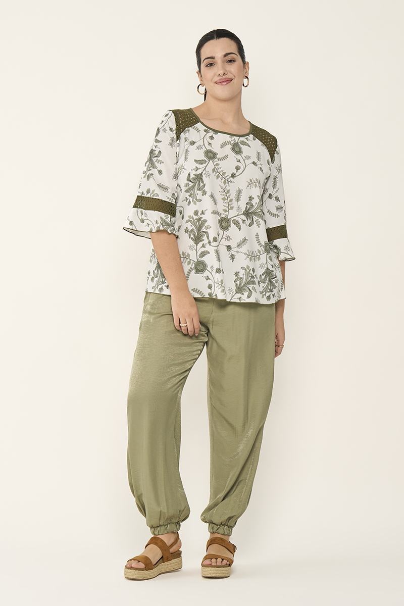 Esta blusa de SPG Woman es esa prenda especial que transforma un look sencillo en uno cuidado y favorecedor. Diseñada para mujeres que buscan ropa de tallas grandes mujer con estilo propio, combina estampado delicado y detalles estratégicos que estilizan sin marcar.