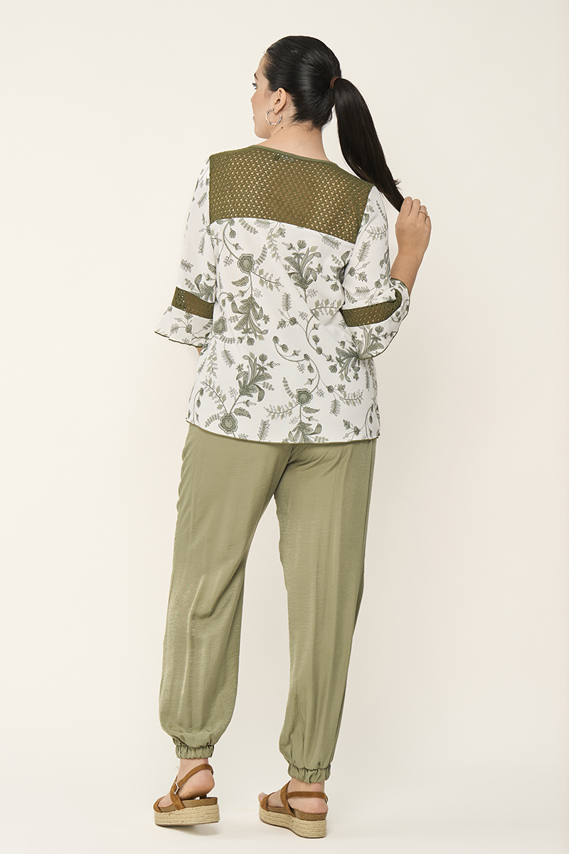 El tejido es ligero y con caída natural, perfecto para primavera-verano.