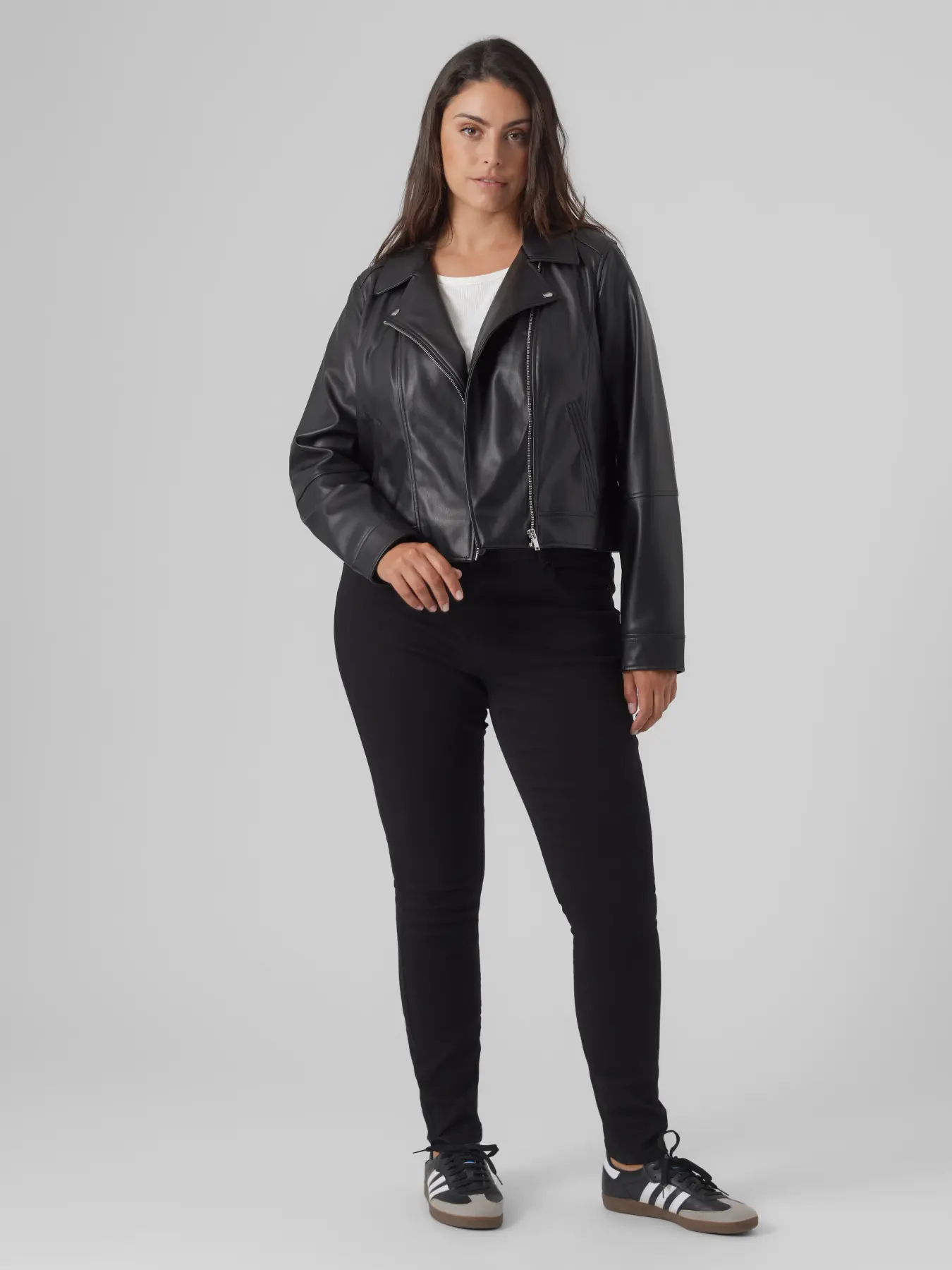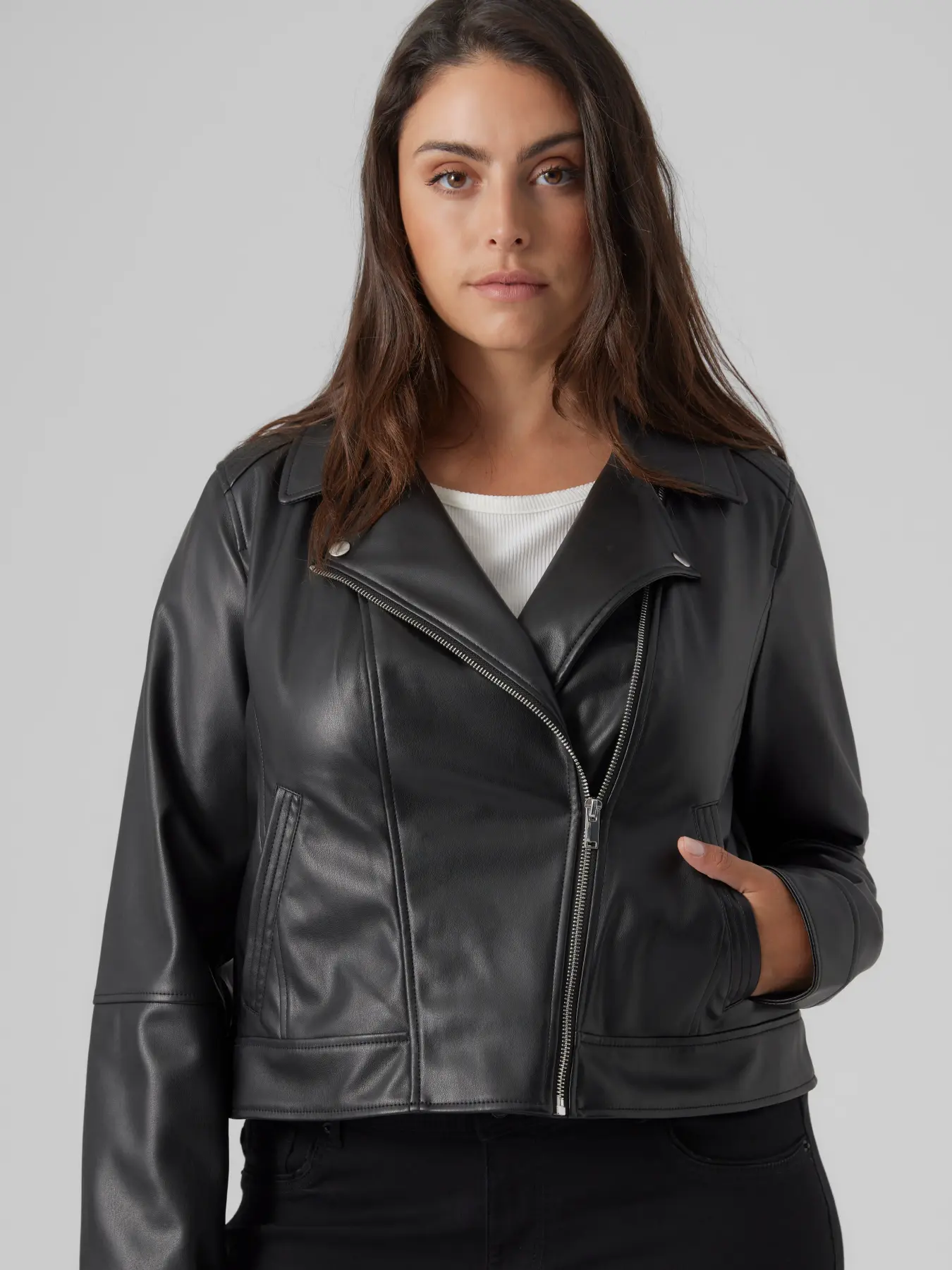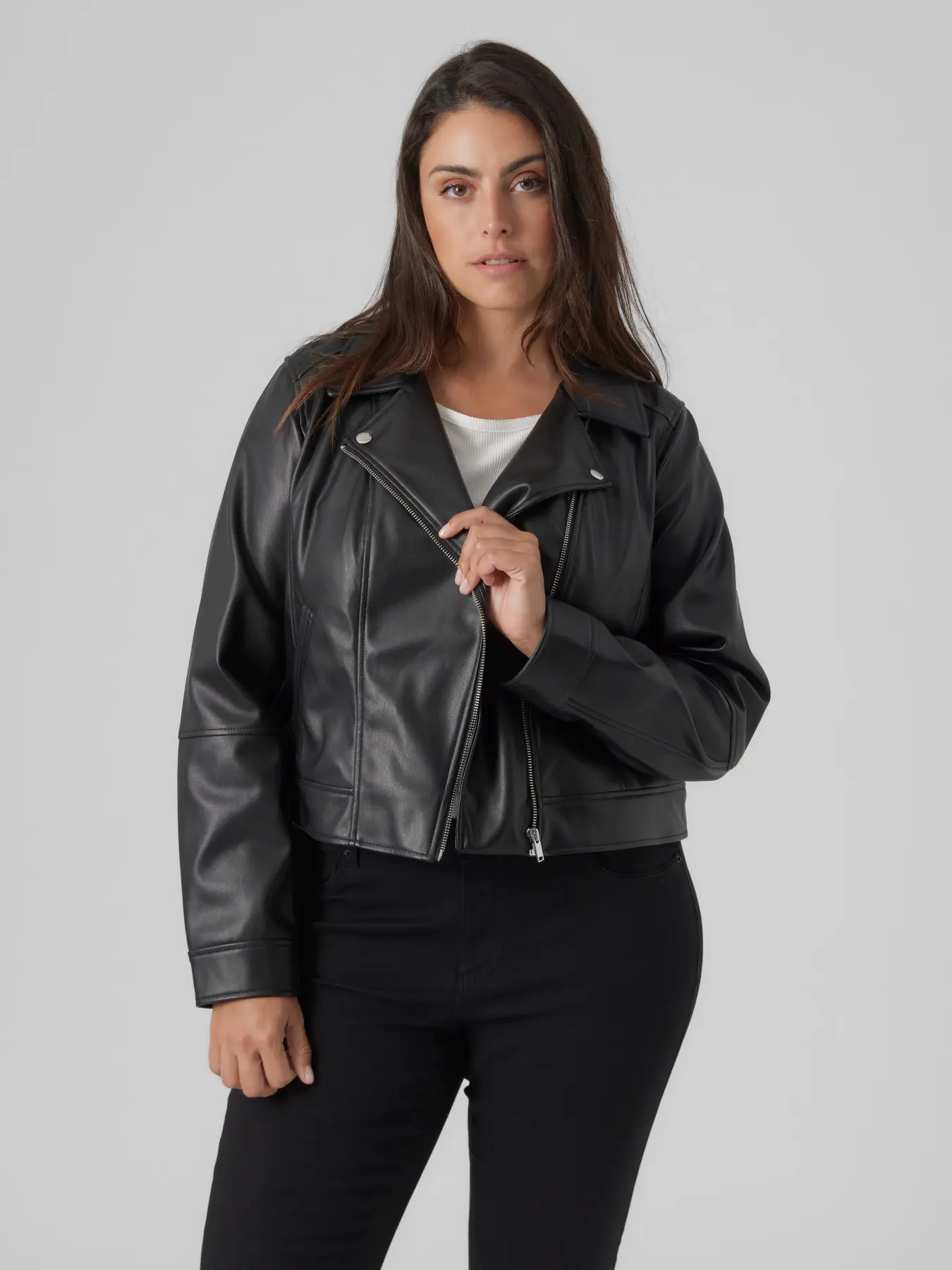 La biker efecto piel de Vero Moda es esa chaqueta que transforma cualquier look en segundos. Atemporal, versátil y con mucha actitud, es perfecta para mujeres que quieren verse actuales sin caer en modas juveniles.